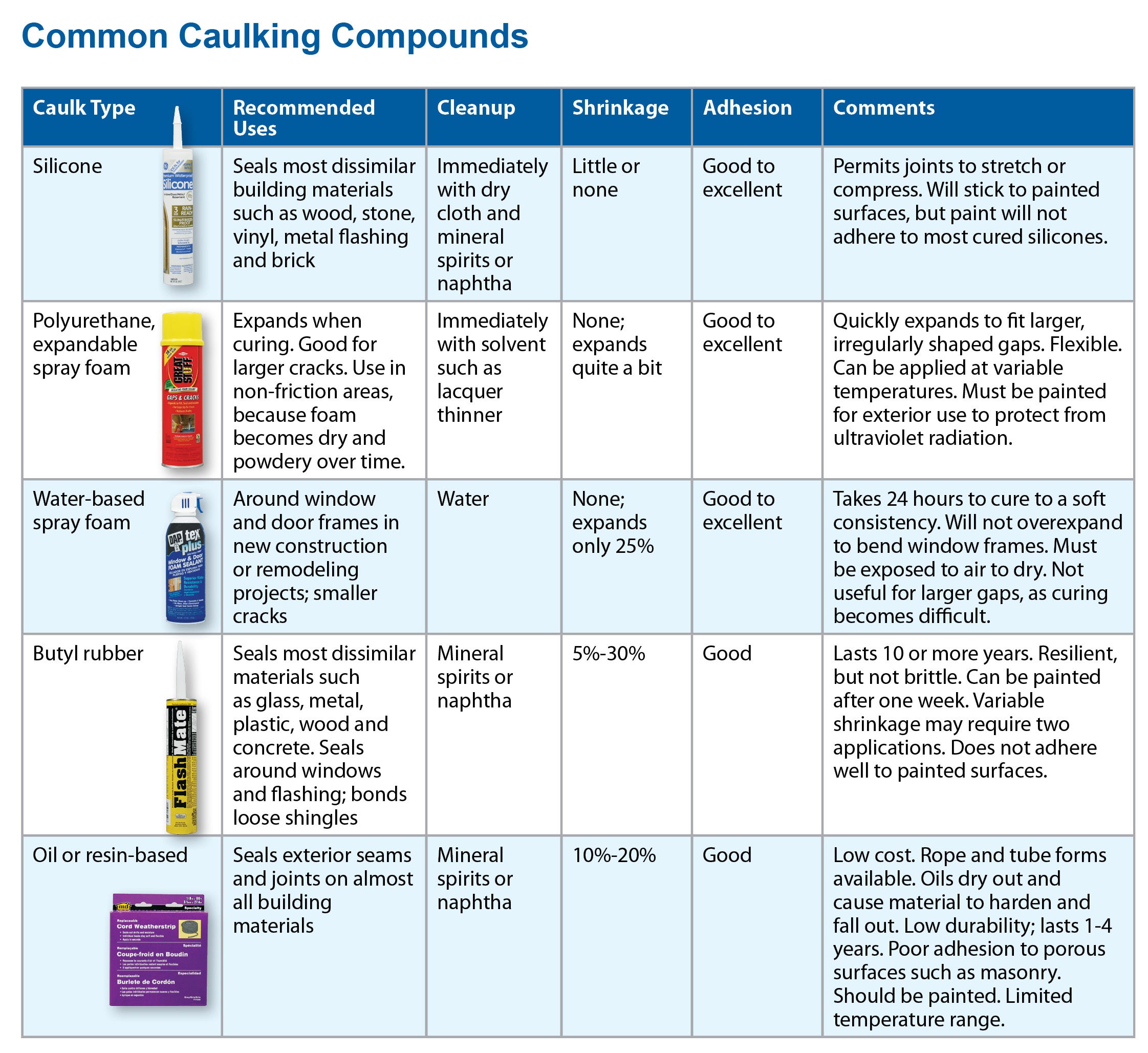 Weather-strip, seal, and caulk leaky doors and windows, and install foam gaskets behind outlet covers. Common caulking compounds (Save up to 2%)
